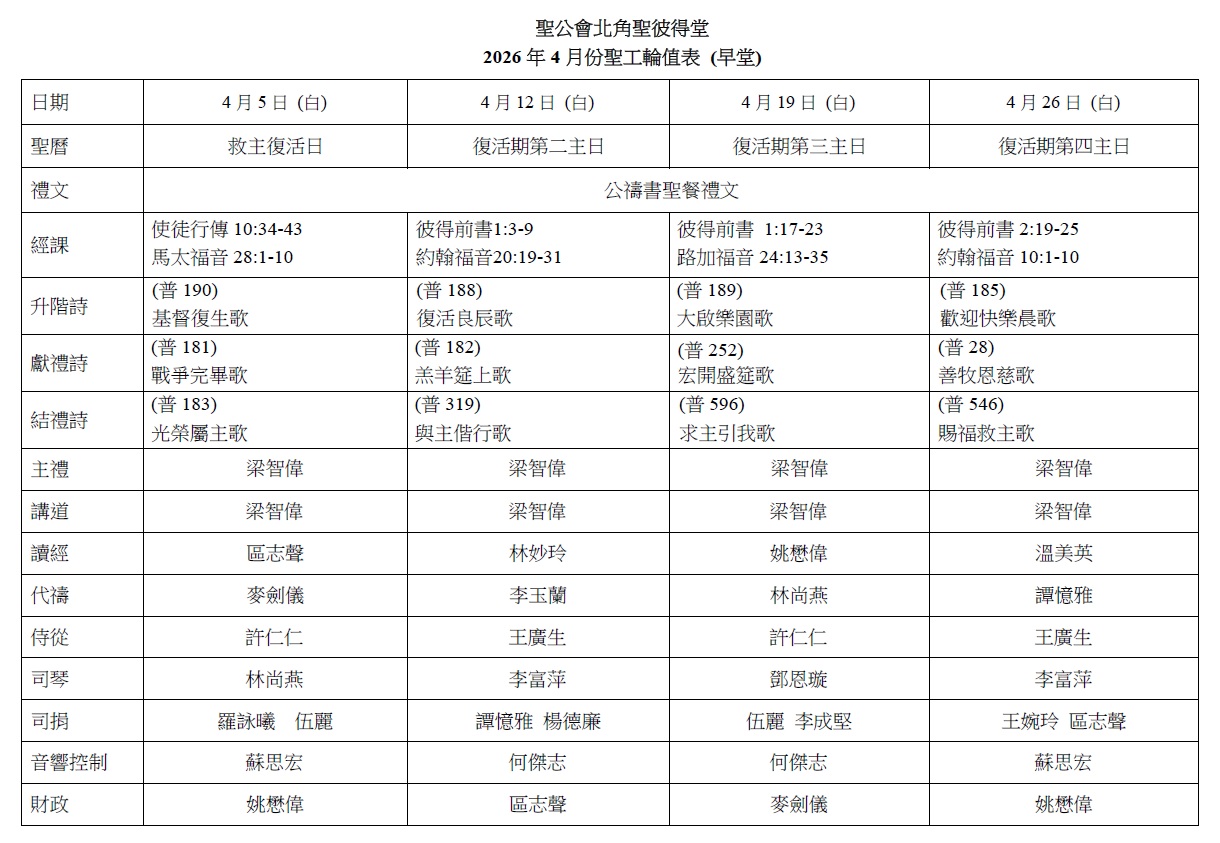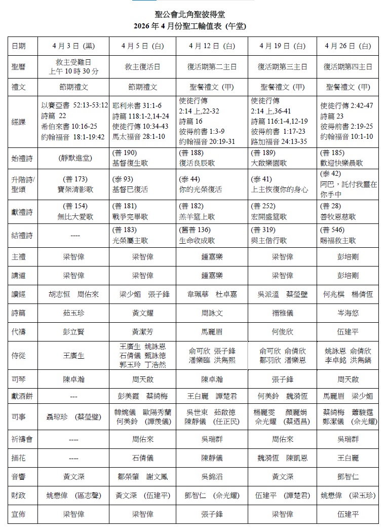 聖工輪值表