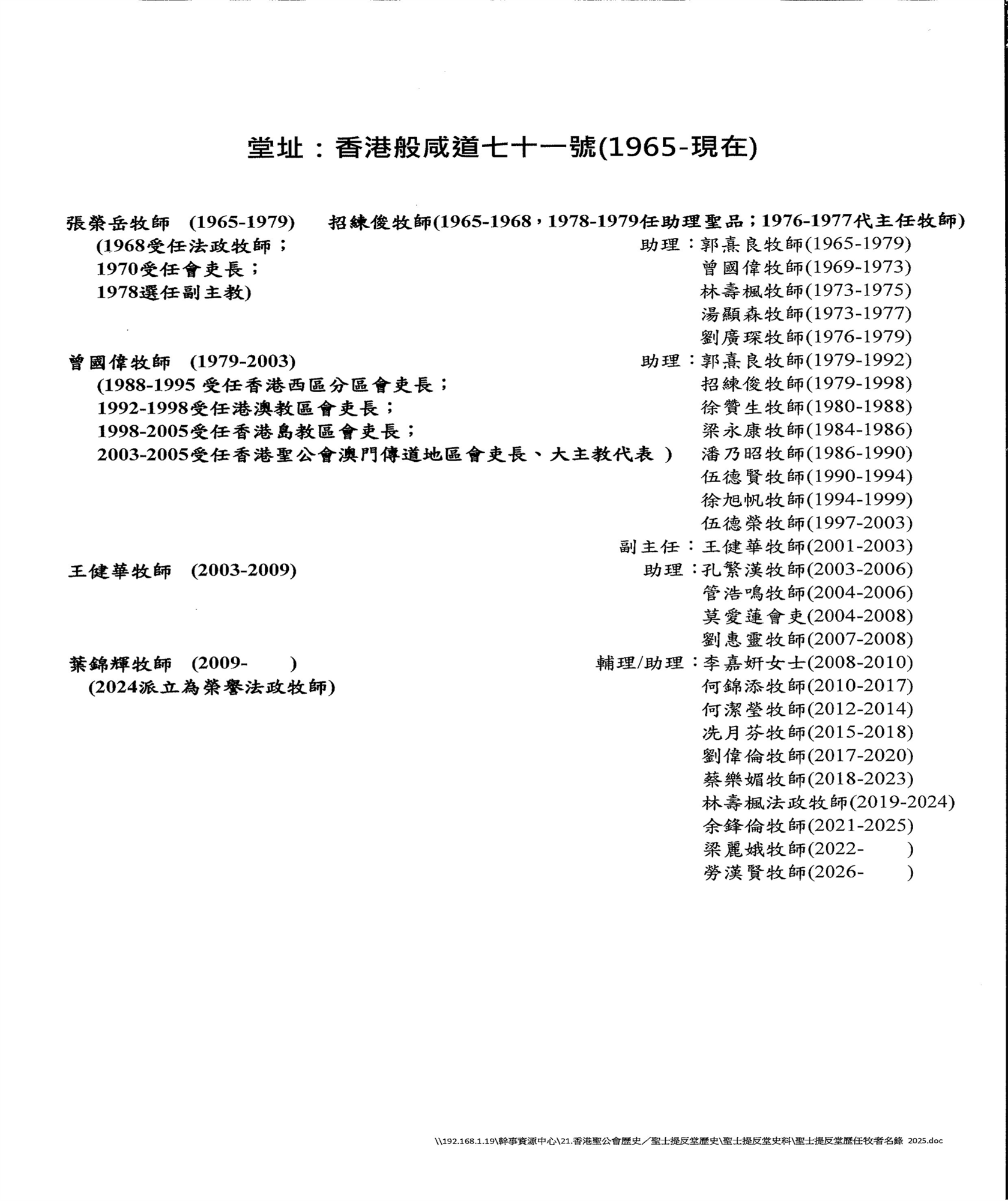 歷任牧者