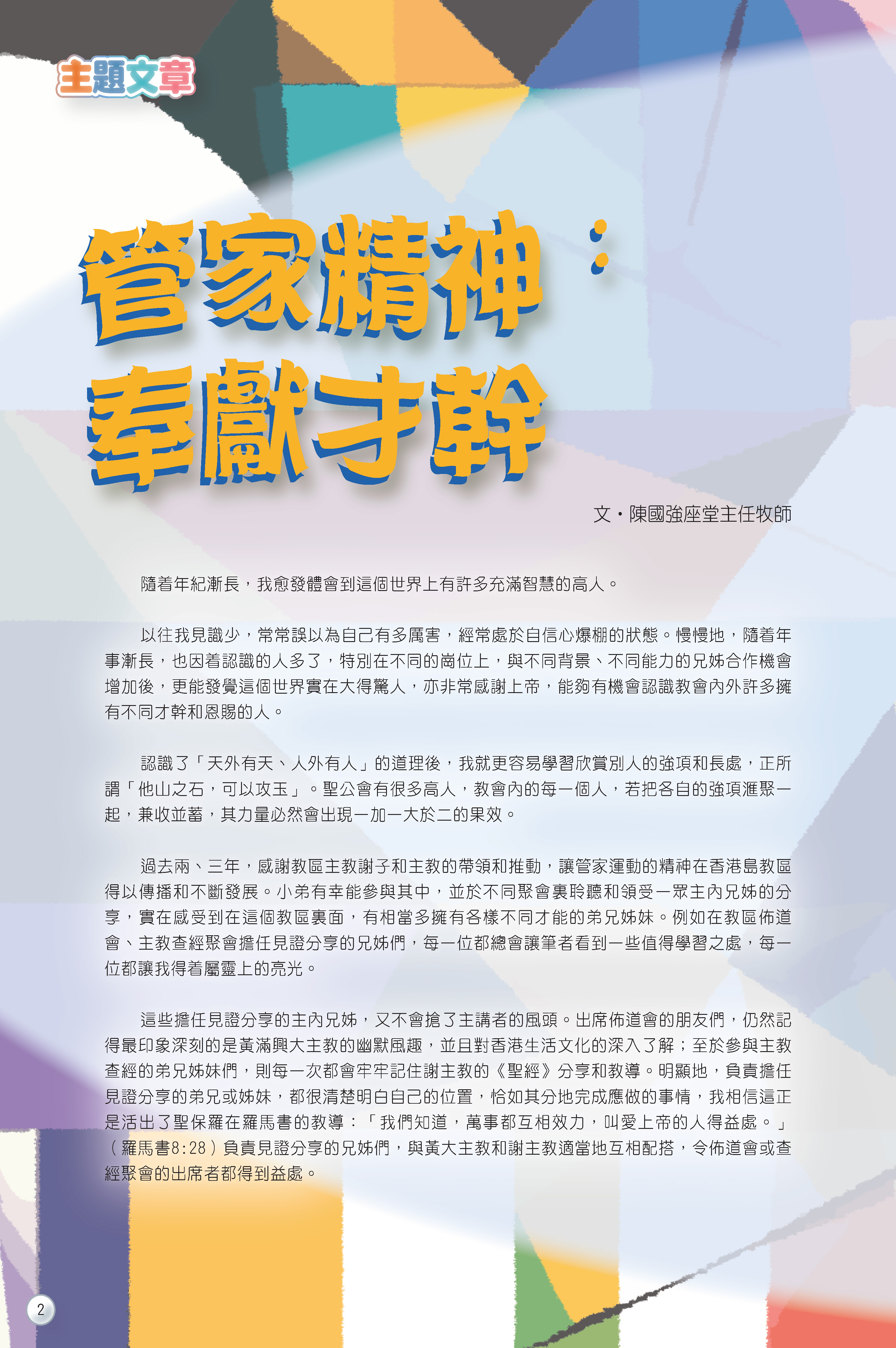 《網絡》66期刊 - 《管家精神:奉獻才幹》—— 陳國強座堂主任牧師