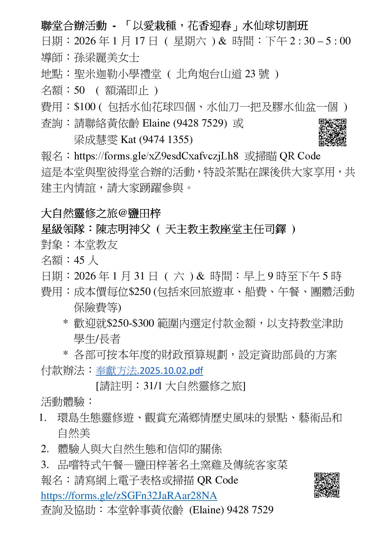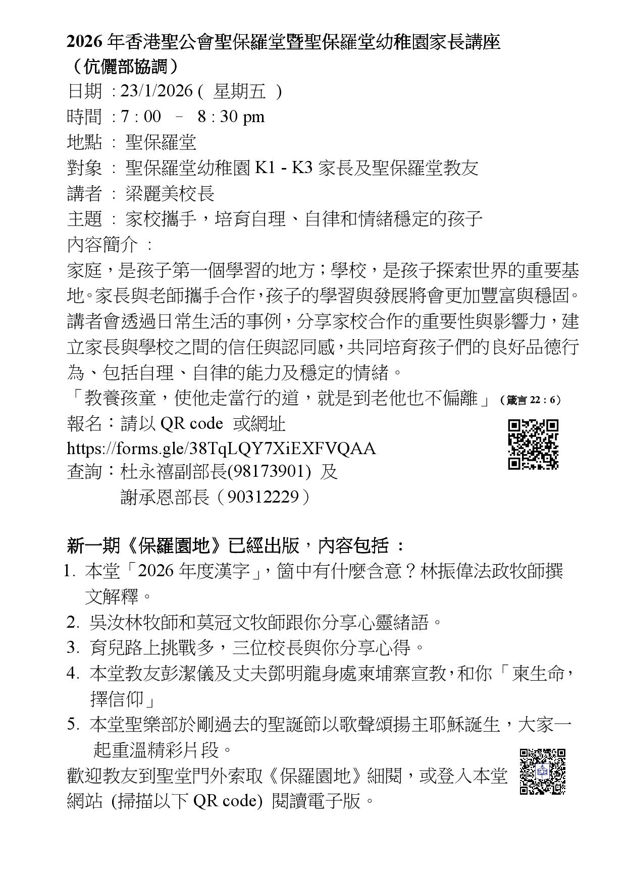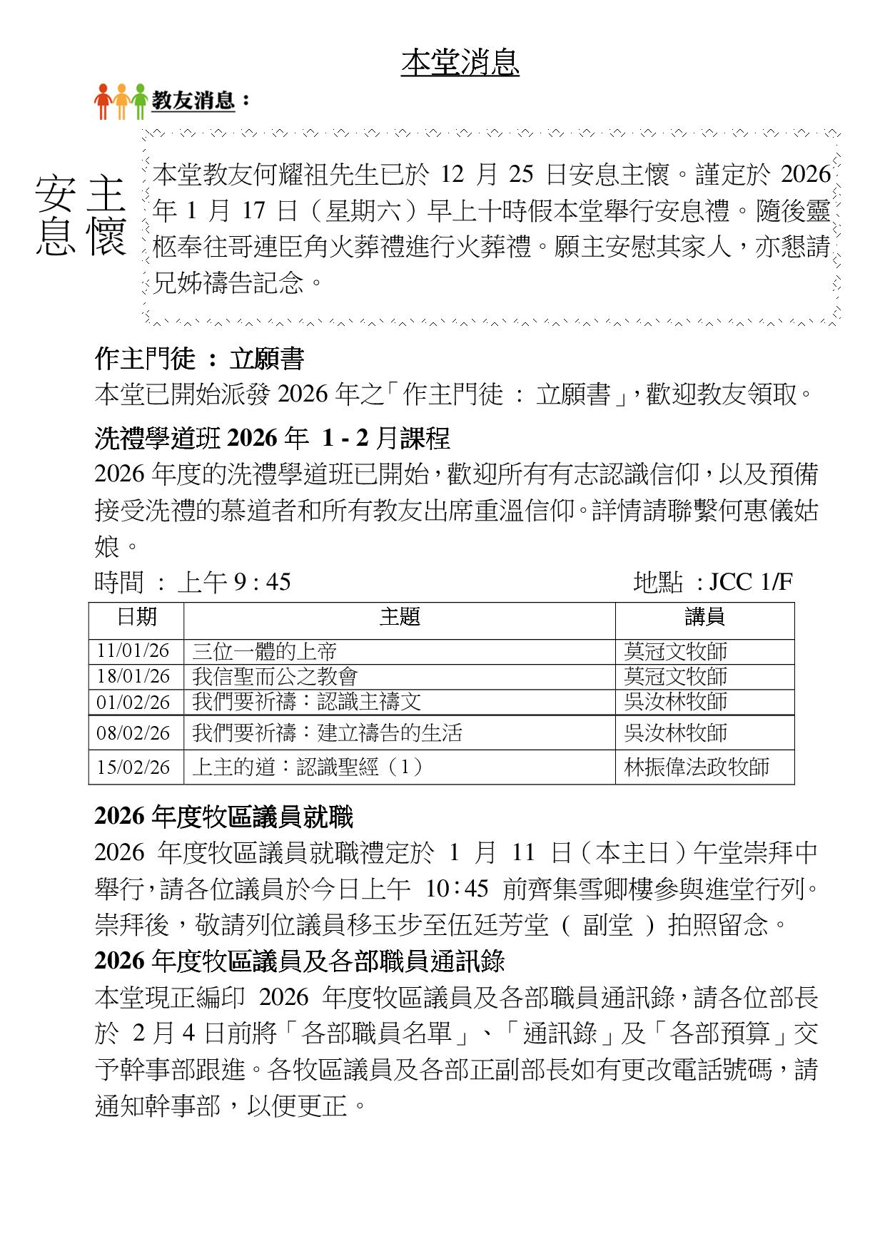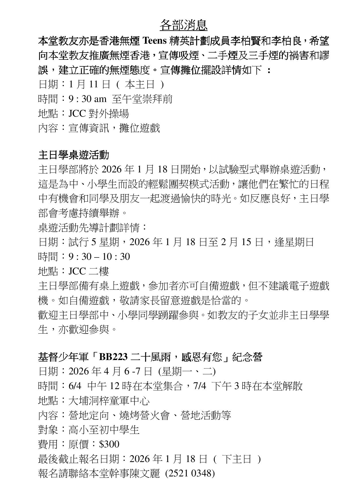 本堂消息 - 每週本堂消息及各部報告