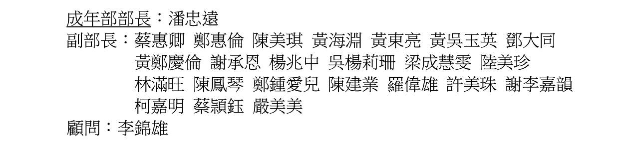 成年部於1961年間設立,以聯絡教友感情、推動聖工為宗旨。